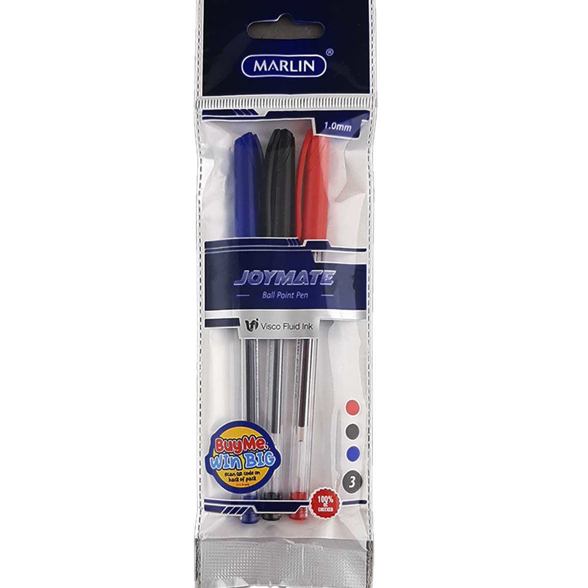 marlin joymate transparent medium pens 3's assorted quantity
